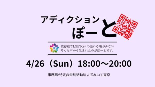 4/26 開催 LGBTQ+が依存症について語れる場「アディクション・ぽーと」
